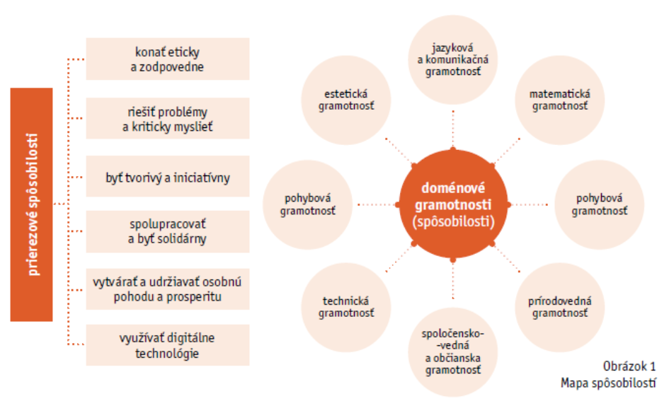 Obrázok 12 Doménové gramotnosti (spôsobilosti) a prierezové spôsobilosti v kurikule základného vzdelávania
